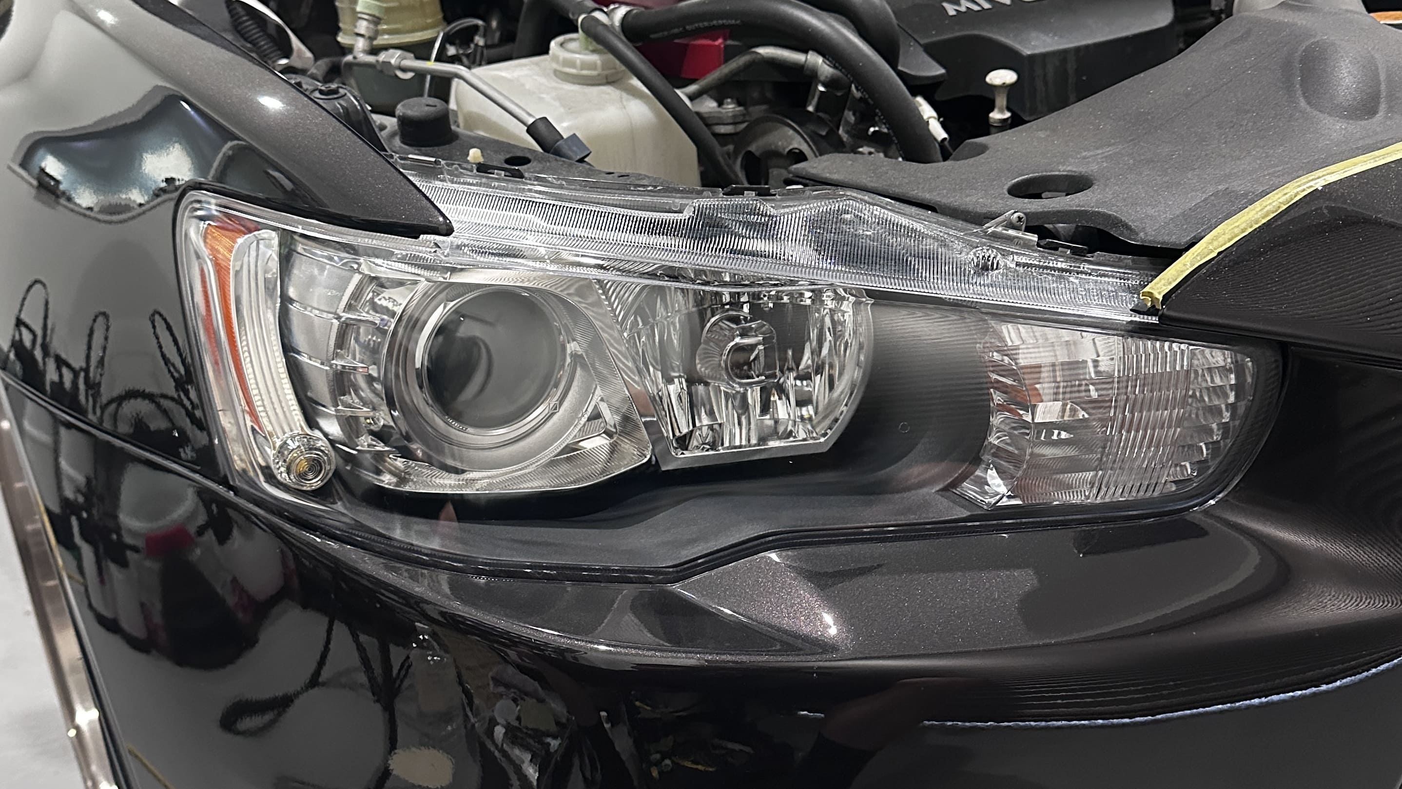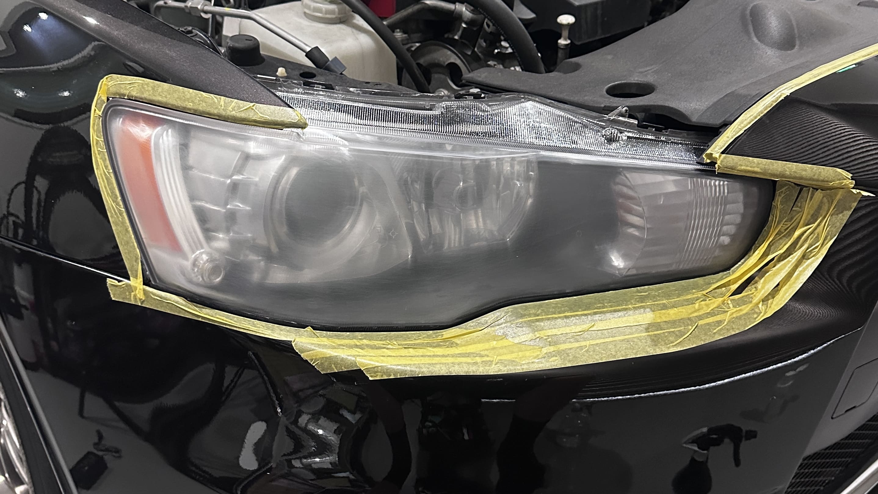UVによる経年劣化で曇ったヘッドライトを、専用の機械で研磨、コーティング。