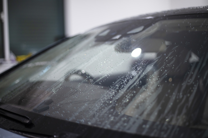 日中の強い日差しや雨の日、夜間の対向車のライトによって、車内のガラスに付着した油膜や曇りが視界を妨げることがあります。